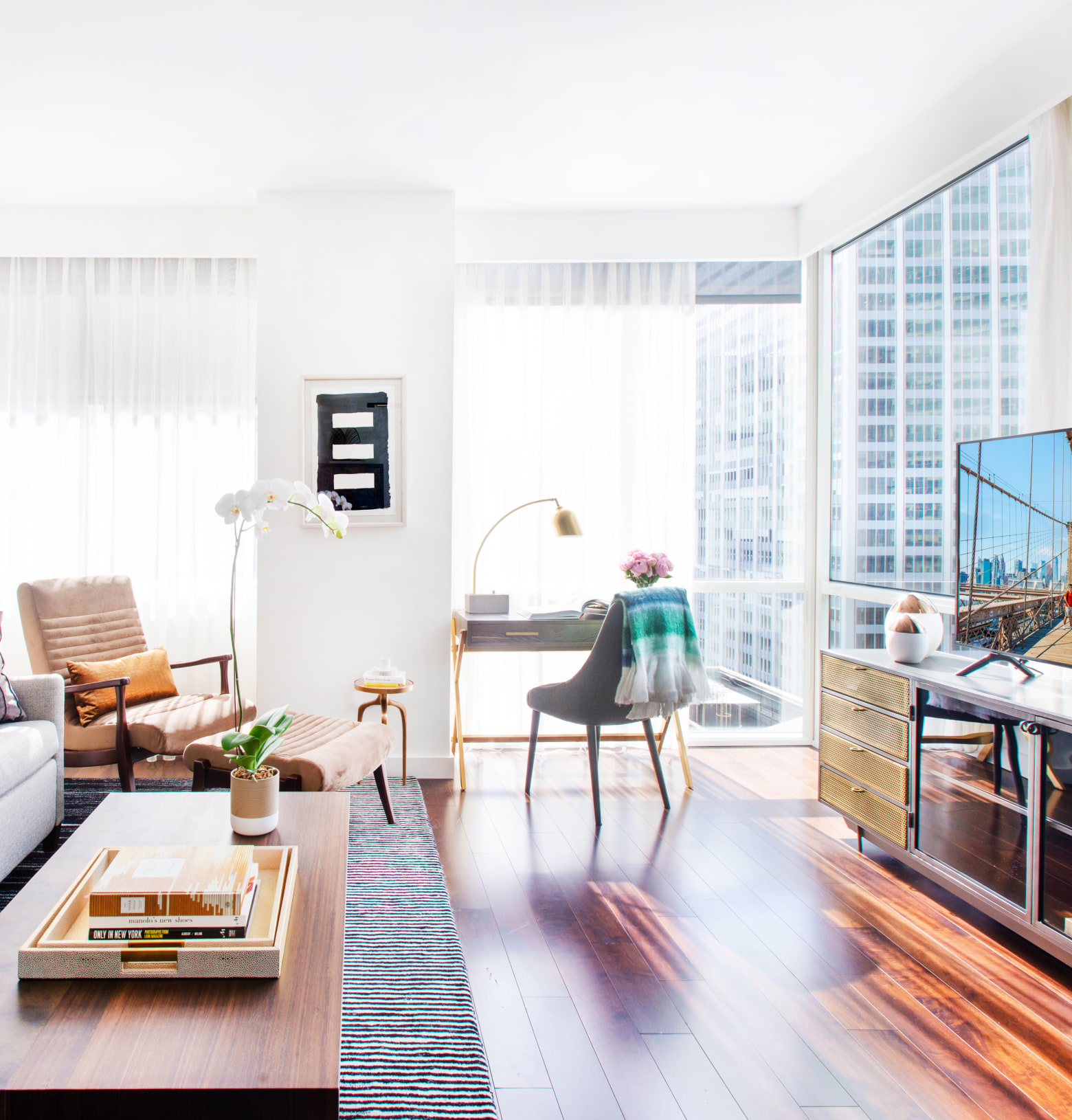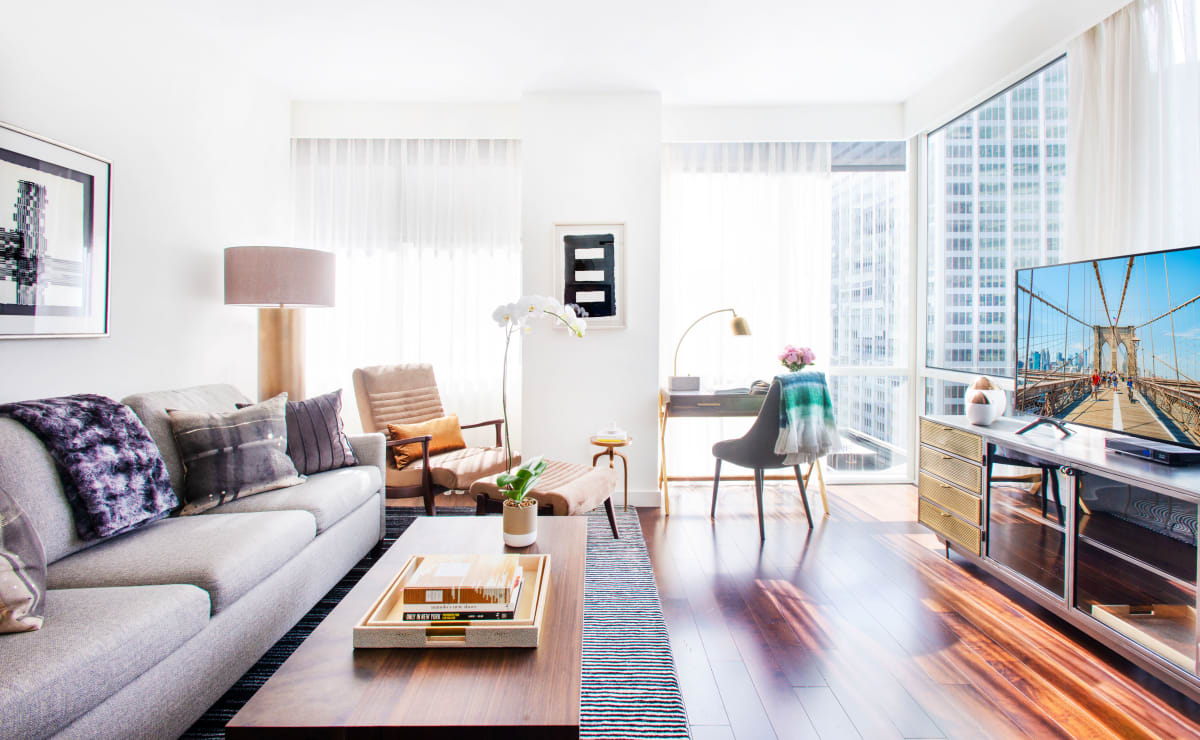 Our two-bedroom residences are outfitted in chic metropolitan flair with cityscape views. See Broadway shows, dine Michelin-star style, privately tour museums, or simply enjoy the lights in The City That Never Sleeps.